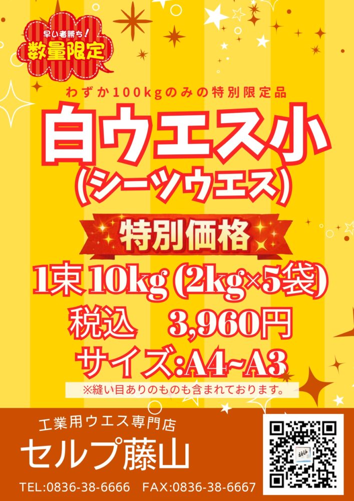 今回特別に「白ウエス小」を100kg数量限定で販売します✨