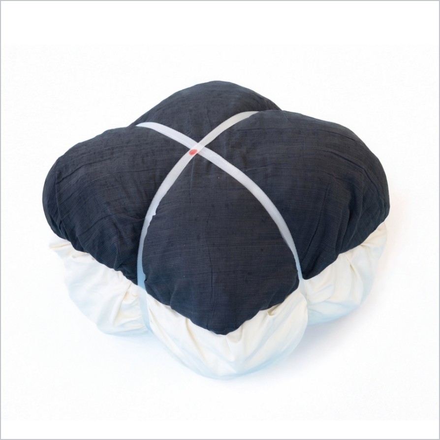 混合素材やシーツ生地などで規格外となったさまざまな素材を組み合わせています。
